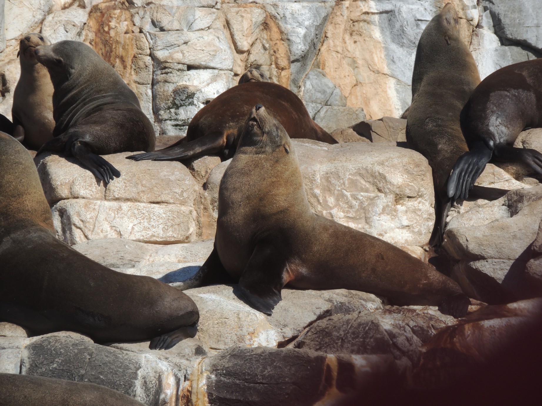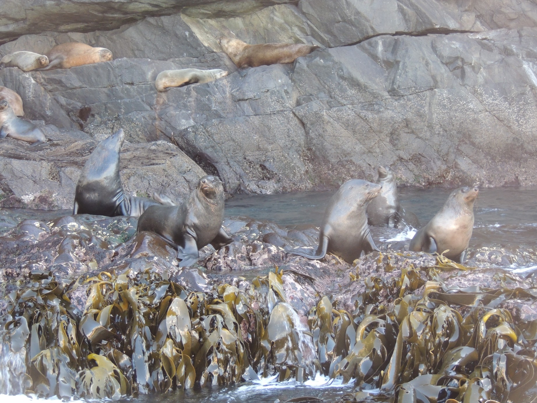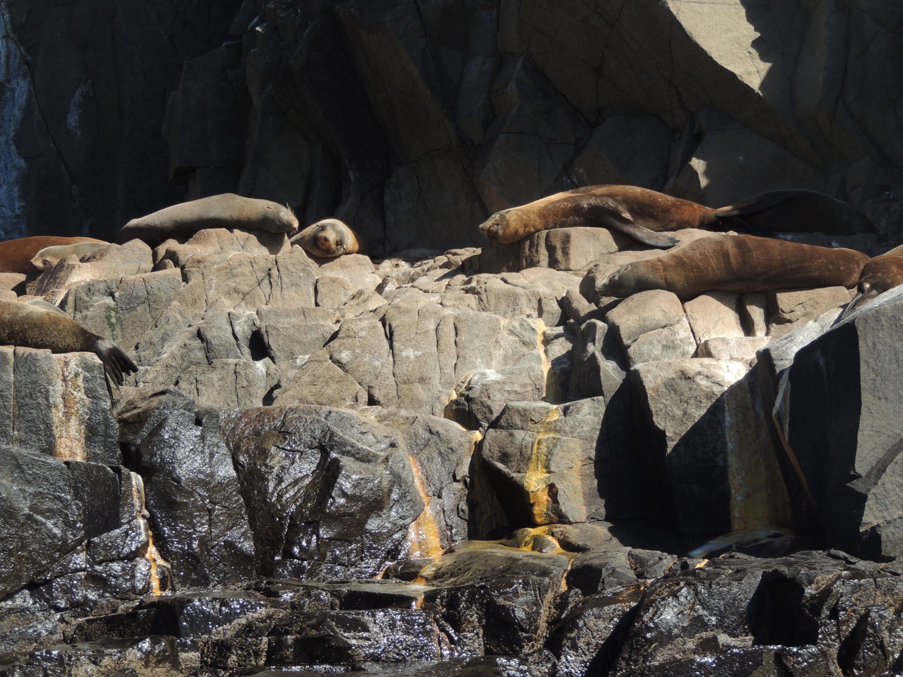 Fur seals soaking up rays along the south Bruny coastline (40/80)