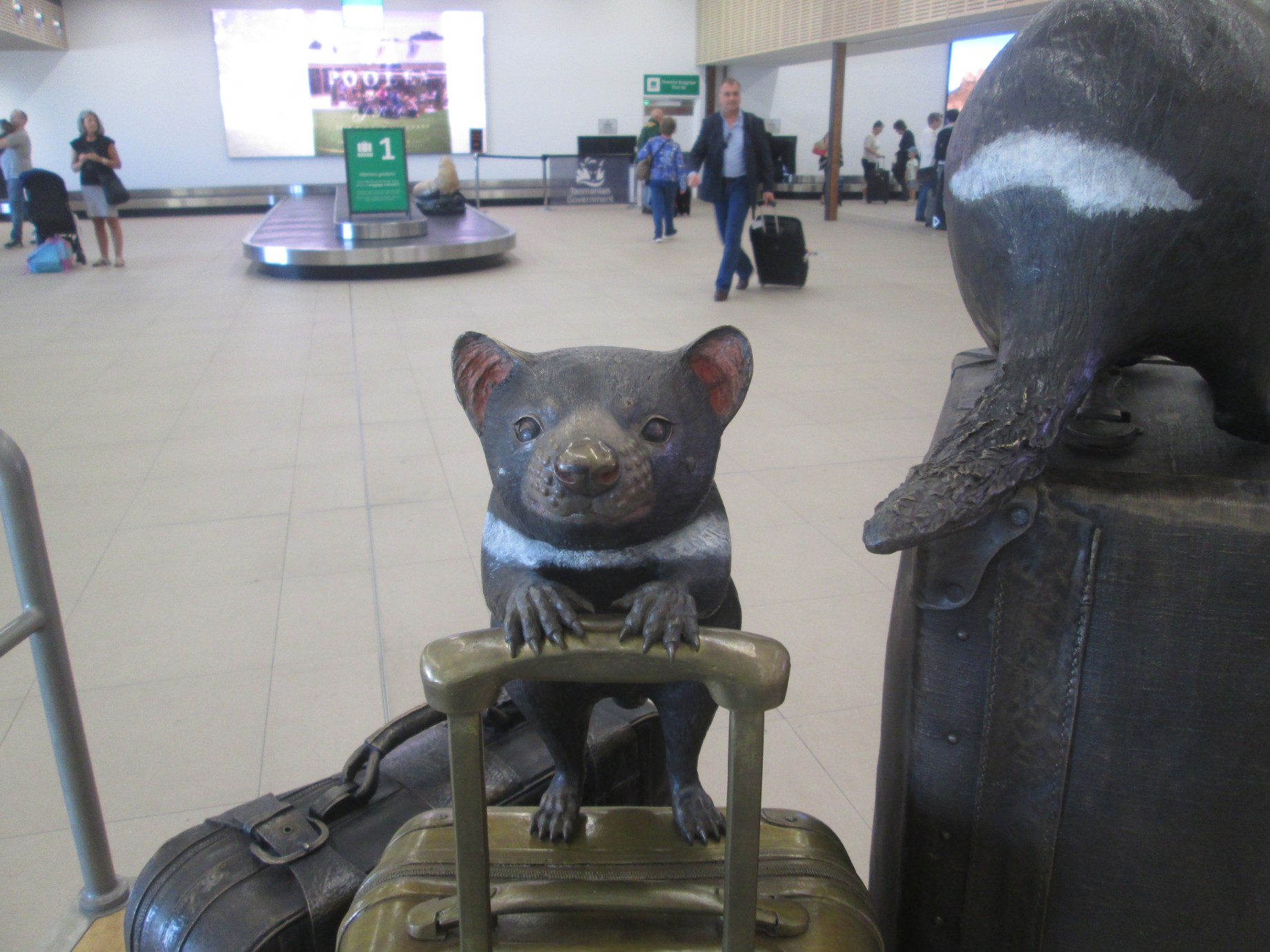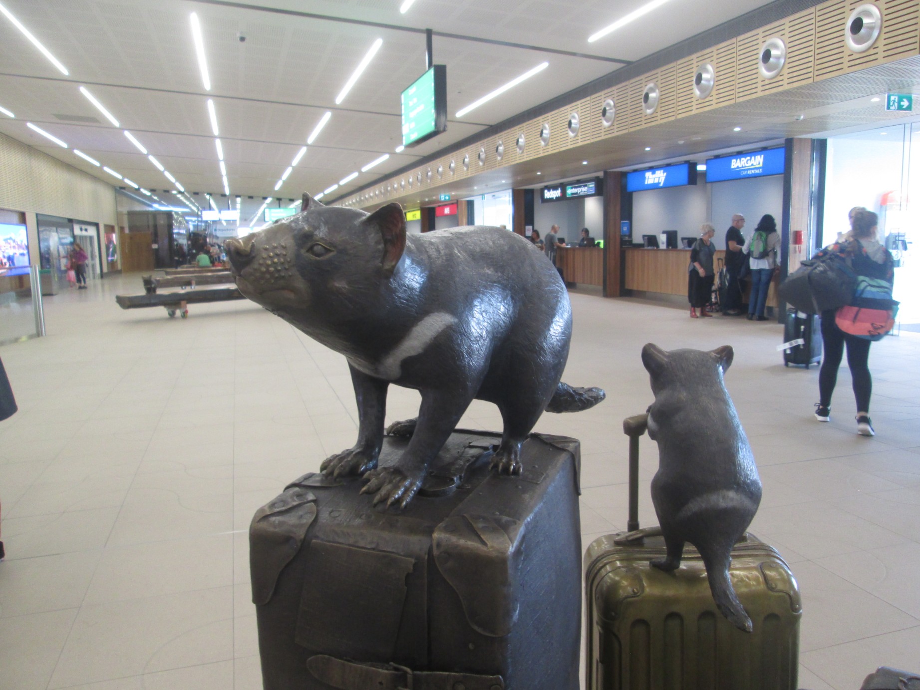 Statues of Tasmanian Devils greet visitors to the Hobart Airport (2/80)